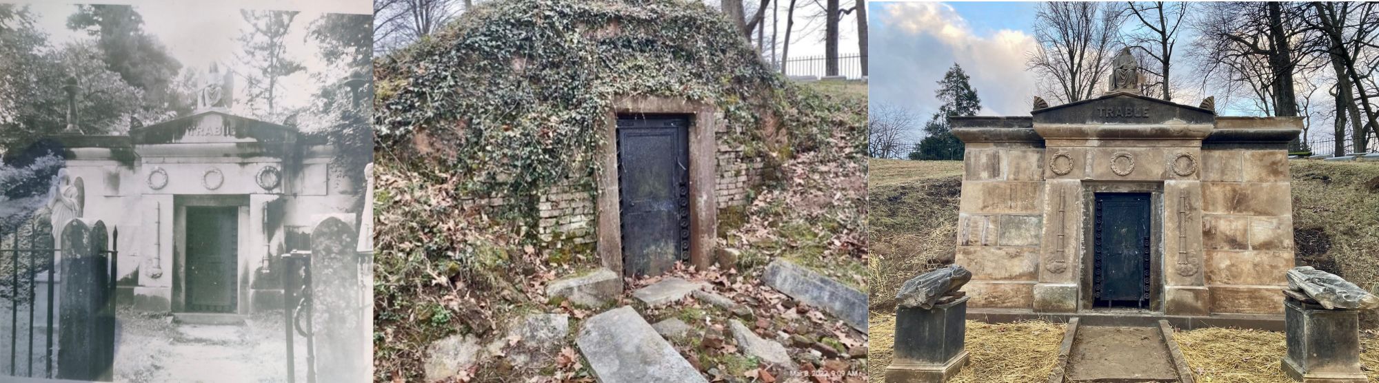 The Trabue Vault reconstruction at Frankfort Cemetery supported by a historic preservation grant from the Daughters of the American Revolution and private donors.
